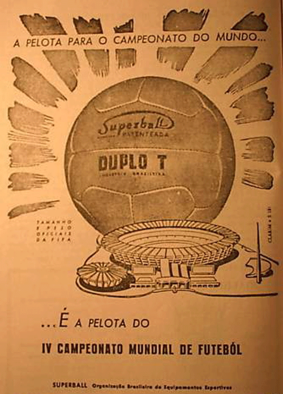Balón utilizado en la década de los 50, y por supuesto en el mundial de Brasil 1950. Formado por 12 gajos. Este modelo fue el primer balón que ya no tenía cosido,ya que disponía de válvula y se hinchaba como los de hoy en día. El material utilizado era el caucho. Este modelo revolucionó la "tecnologia" de la fabricación de balones porque fue el primero que ya no tenía ningún tipo de cosido exterior tipo lazo como se puede ver en las fotos. Para hincharlo disponía de una válvula parecida a los de hoy en día, pero seguía hecha de piel auténtica. Este modelo tenía la inscripción de "SuperBall Duplo T" serigrafiada en su cubierta. Al no tener ese cosido exterior por donde se hinchaba, el balón era menos peligroso para ser golpeado con la cabeza. Ya que con los modelos más antiguos, los jugadores podían tener lesiones graves al rematar de cabeza. Podían incluso sangrar después de un golpeo con la cabeza. Aunque este balón, Super Duplo T también estaba formado por 12 paneles, no confundirlo con el modelo 1930 de doce paneles. Hay dos grandes diferencias, la primera es que no tenía cosido exerior para acceder a la vejiga y poder hincharlo, y segundo que sus paneles estaban un poco entrelazados.