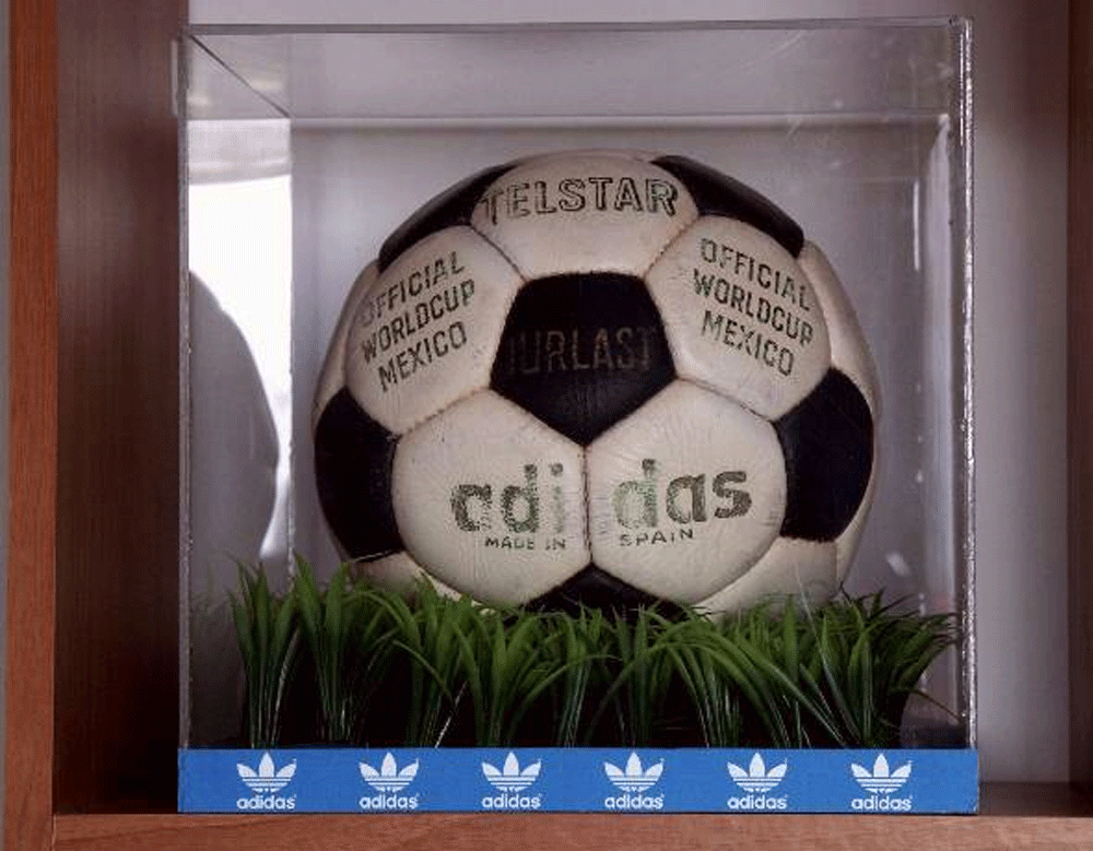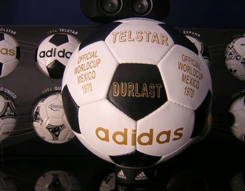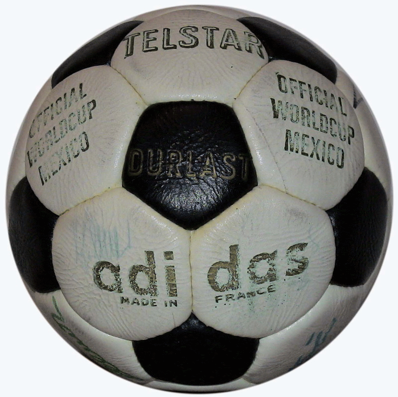 Balón oficial del mundial México 1970. También estaba hecho de cuero, pero el primer modelo compuesto por 32 paneles cosidos a mano (12 pentaágonos negros y 20 hexágonos blancos). Esta nueva forma de paneles conseguía que el balón fuera más esférico que la utilización de aquellos paneles alargados. El balón Telstar de 1970 fue el primer balón de Adidas en ser utilizado en un mundial. A partir de este año Adidas ya tendrá los derechos para los diseños de todos los esféricos de los próximos mundiales. Técnicamente hablando el Telstar revolucionó el mercado de los balones debido al nuevo cosido que lanzó Adidas, cosido de pentágonos y hexágonos. El nombre de Telstar fue el nombre que se puso al satélite nuevo que gracias a él se pudieron ver los partidos de Mexico 70 en más países de todo el mundo. En los 70 la televisión dio el boom a nivel mundial y empezó a ser vista de forma masiva en el mundo entero, con lo cual Adidas decidió llamarlo como dicho satélite para crear su primer balón mundialista.