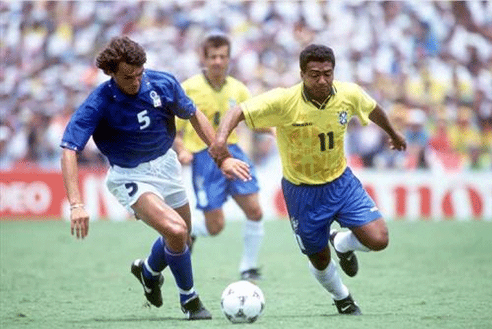 Aquí vemos a Romario y Maldini en la final del mundial, cuyo ganador fue Brasil.