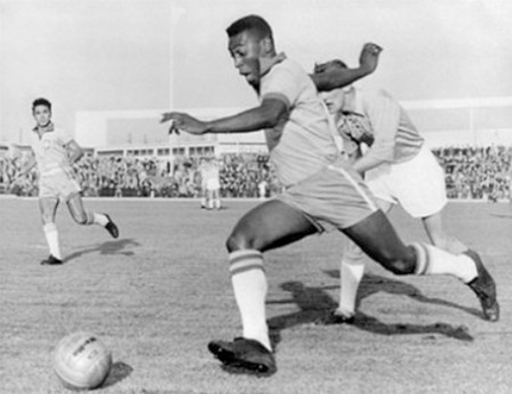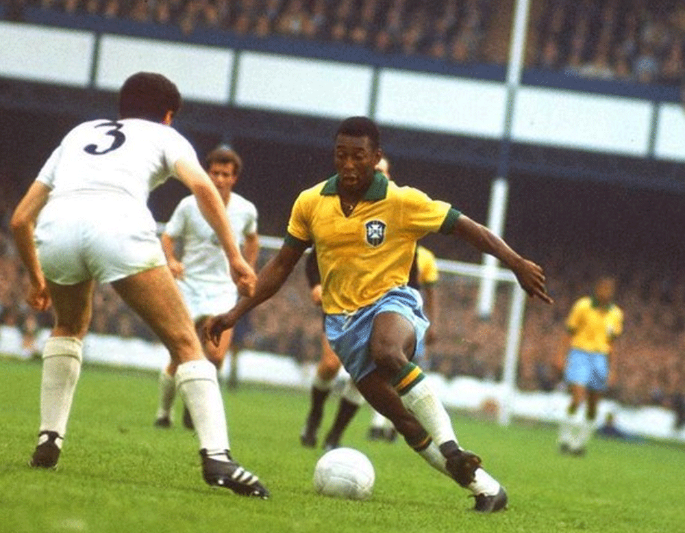 Pele playing the championship with the official ball, the Top-Star.
