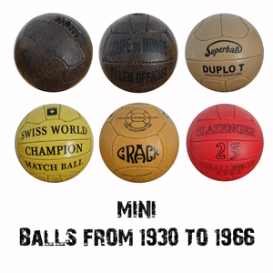 Our models are exact reproductions to the leather balls from the 30's until the beginning of the 70's. Many of these models were also to the other Soccer World Cups; Uruguay 1930, Italy 1934, France 1938, Brazil 1950, Switzerland 1954, Sweden 1958, England 1966. Later the Adidas brand was responsible for the great protagonist of these important sporting events.