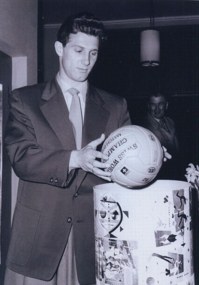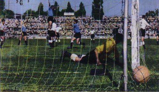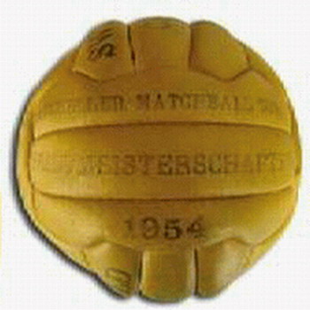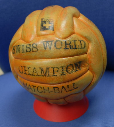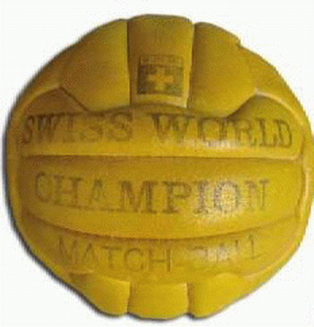 Official match ball of the 1954 World Cup in Switzerland Model Swiss This ball was used in the 1954 World Cup in Switzerland. It consisted of 18 panels intertwined. This ball was the first model which did not have the typical color of the leather, brown. This model was tinted in yellow. Available in store.