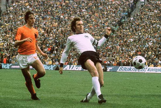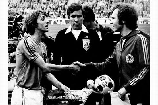 Here we see Johan Cruyff and Franz Beckenbauer competing