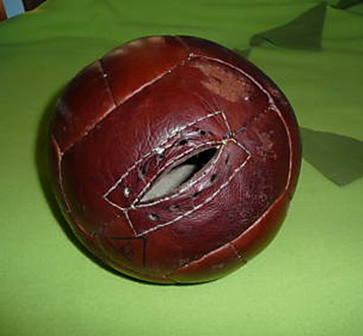 These balls had an openning, as you can see on the picture above, in order to access the bladder to inflate the ball. The ball had a laces out the ball to protect the bladder (picture below).