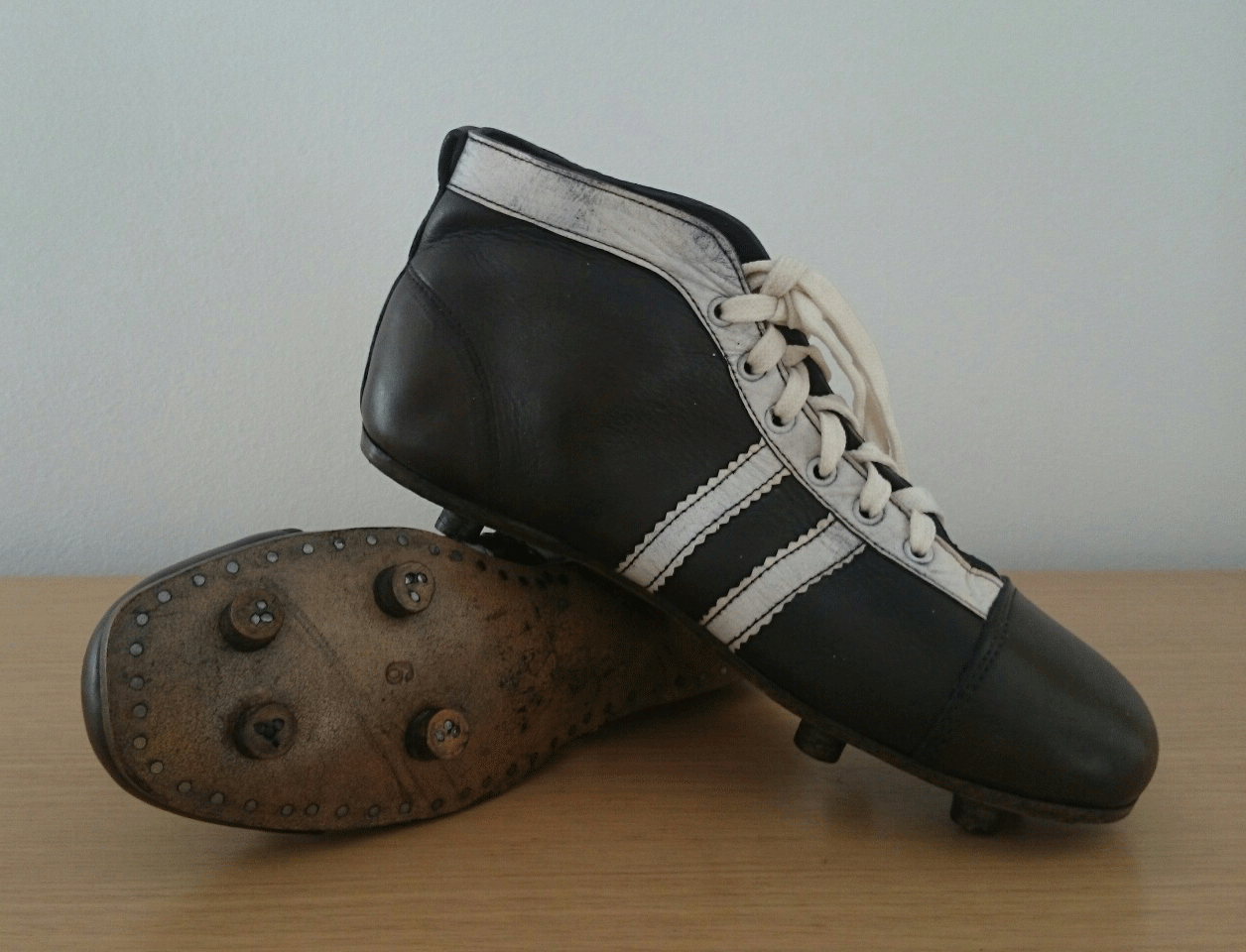 En la década de 1940 la tecnología para producir botas reglamentarias de fútbol era prácticamente la misma. Las botas seguían siendo de auténtica piel y con tacos de madera. Pero la altura del botín descendió un poco respecto sus antecesores. En cuanto al diseño van apareciendo más emotivos decorativos. Por ejemplo se tintaban partes de las botas de color blanco para que fueran más llamativas. El color predominante seguía siendo negro. |